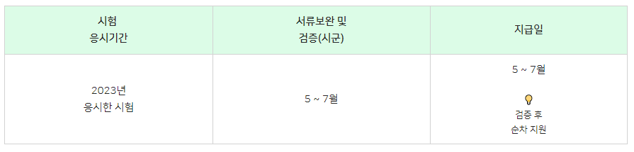 ※ 단, 저가 시험 응시로 3회 신청금액이 10만원 미만인 경우, 10만 원 한도 내 추가 신청 가능