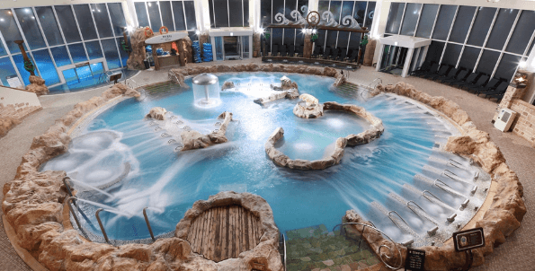 워터파크는 실외와 실내로 나뉘어 있고, 특히 실내에는 아이들과 함께 즐길 수 있는 안전한 유수 풀이 있다.