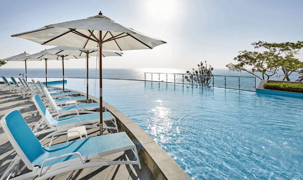리조트 체크인 후 만날 수 있는 첫 번째 인피니트 풀은 해외 리조트 수영장 못지않은 고급스러운 분위기를 즐길 수 있다.