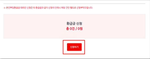 3. 환급금이 있는 경우 빨간색 신청하기 버튼을 누른다