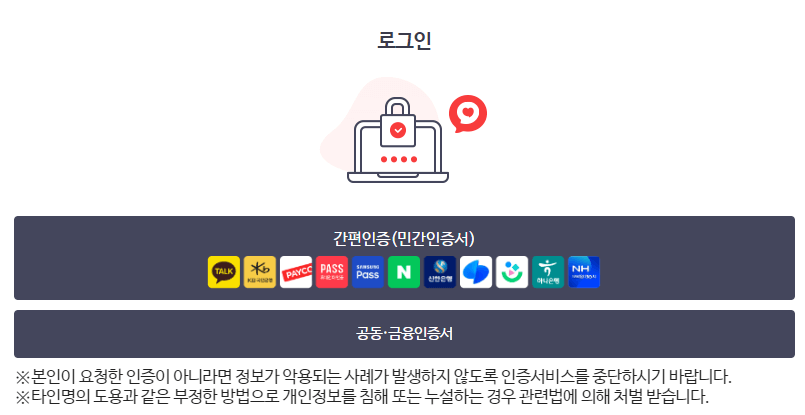 국민연금 환급금 조회 및 신청은 국민건강보험공단 홈페이지에서 가능하며, 이때 다음과 같은 간단한 본인인증 절차를 거치게 된다.