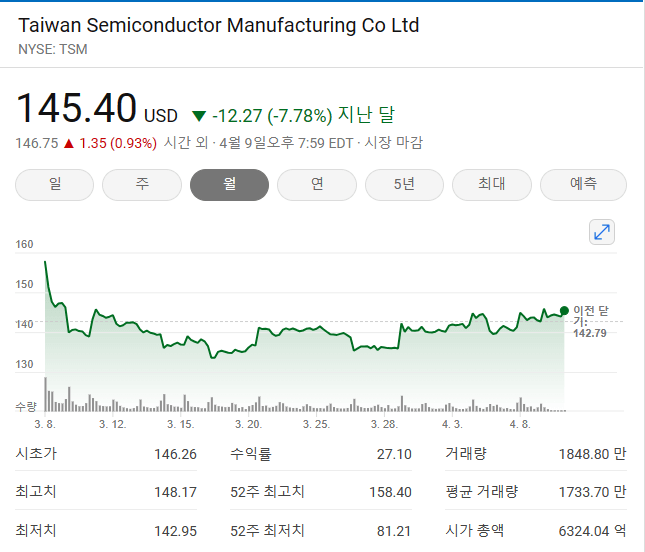 TSMC 4월 주가 현황