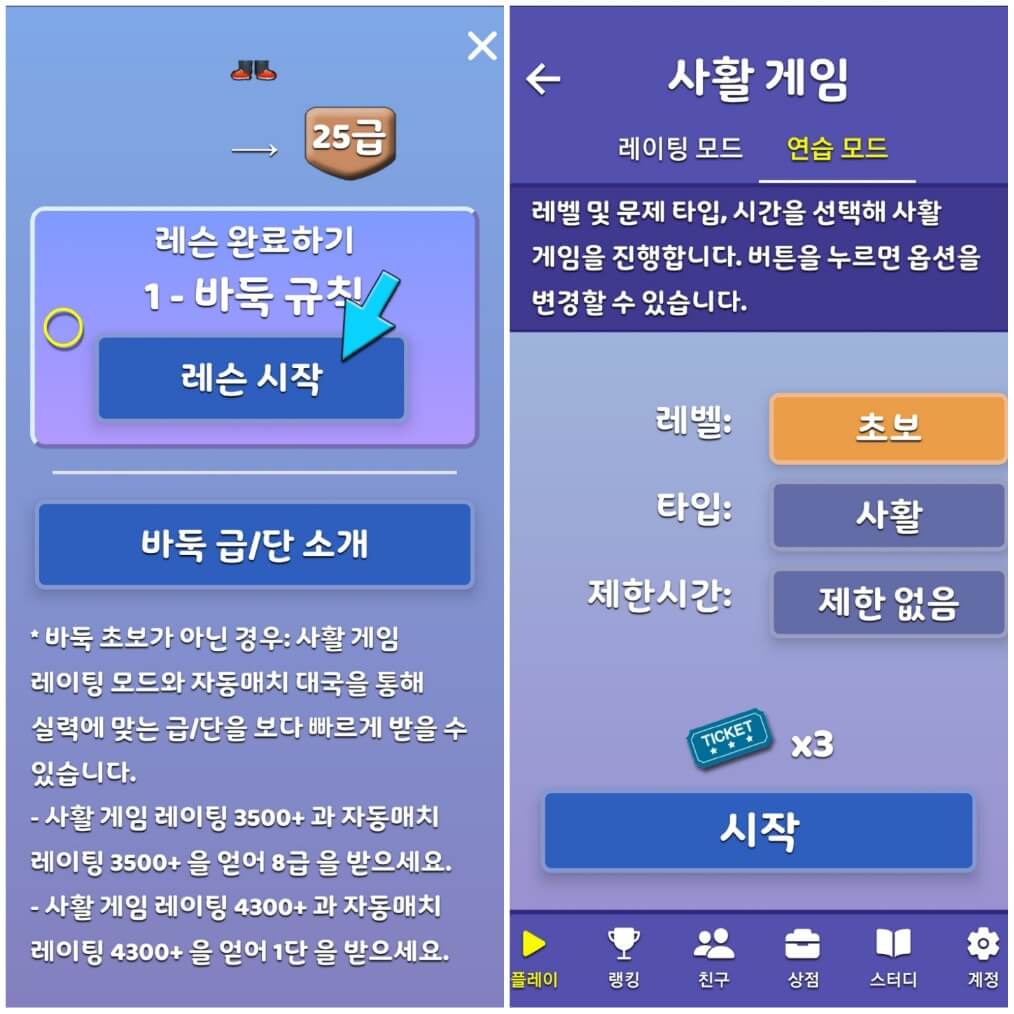 레슨에서는 기본적인 바둑 규칙, 바둑돌 잡는 법, 사활 내용 등을 안내한다.
