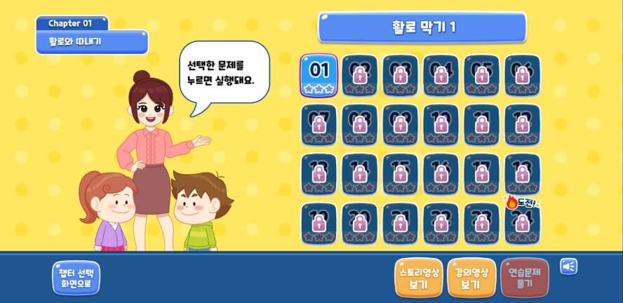 애니메이션을 통해 바둑의 기초와 원리를 재밌게 배우고, 다양한 실전 연습문제를 게임으로 풀어보며 아이들 스스로 실력을 키울 수 있다.