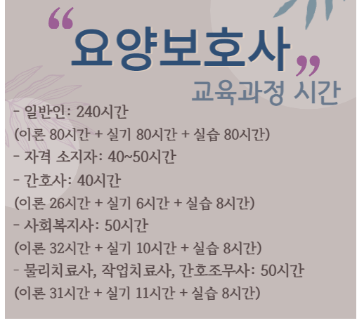 일반인 : 240시간 간호사 자격소지자 : 40시간
