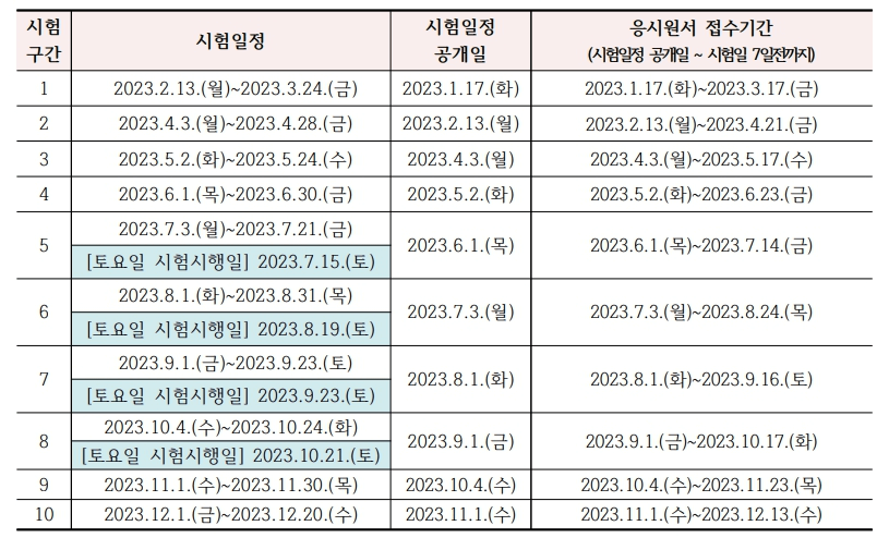시험일정 공개일로 부터 시험일 7일전까지 응시수수료 결제 후 시험일 까지 상시 다음날 10시