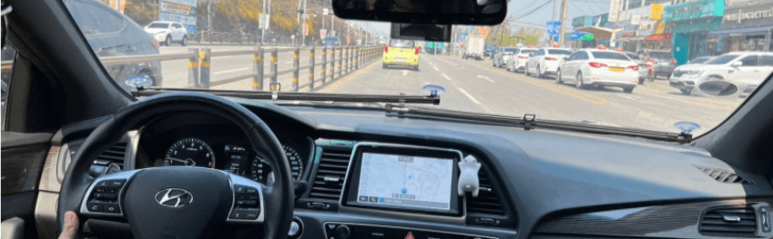 주행 중에도 달고 다녀야 하는 불편함은 생길 수 있겠지만 아래 사진처럼 운전 중 시야를 가리지 않아 원터치 제품으로 일품인 듯합니다.