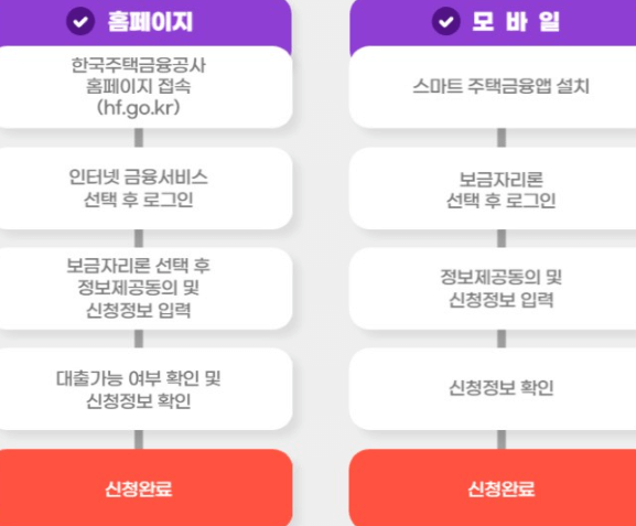 온라인 신청은 주택금융공사 홈페이지 통하거나 스마트 주택금융 앱을 이용할 수 있습니다.